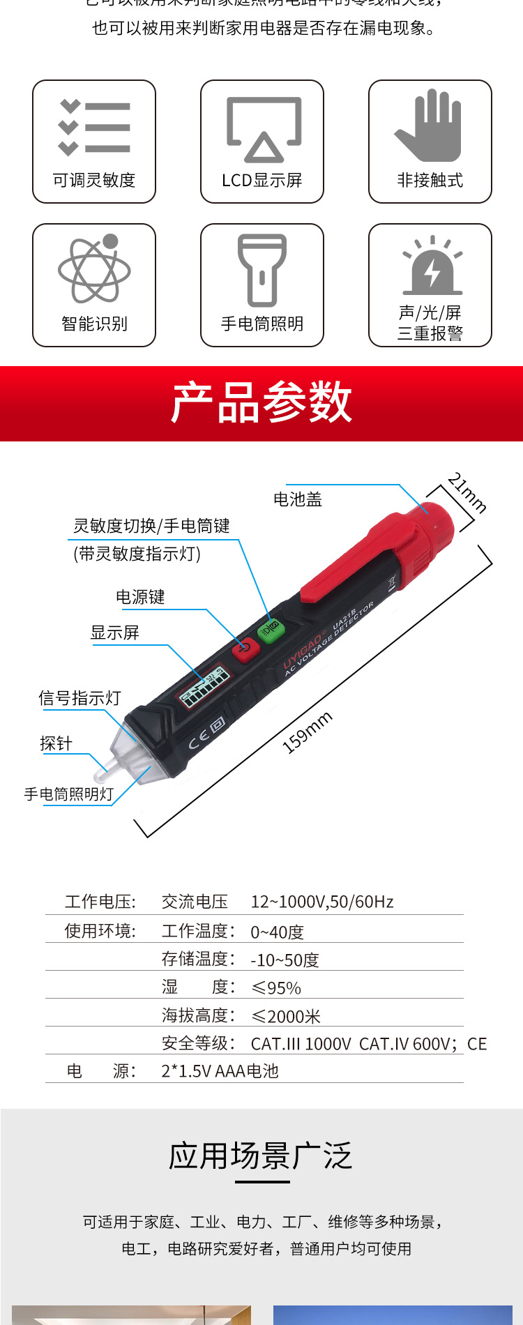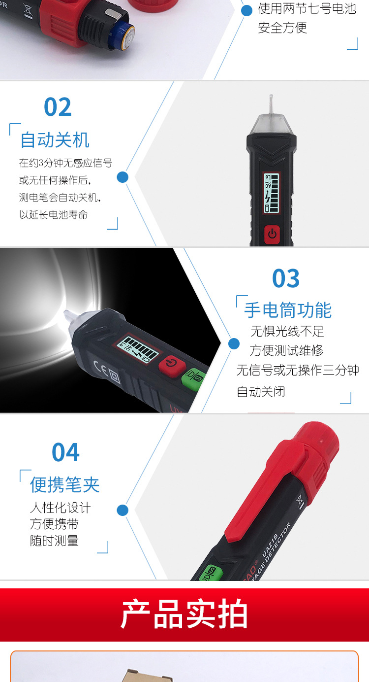 優儀高UA21B非接觸式智能電筆多功能專業電筆電工家用感應測電筆