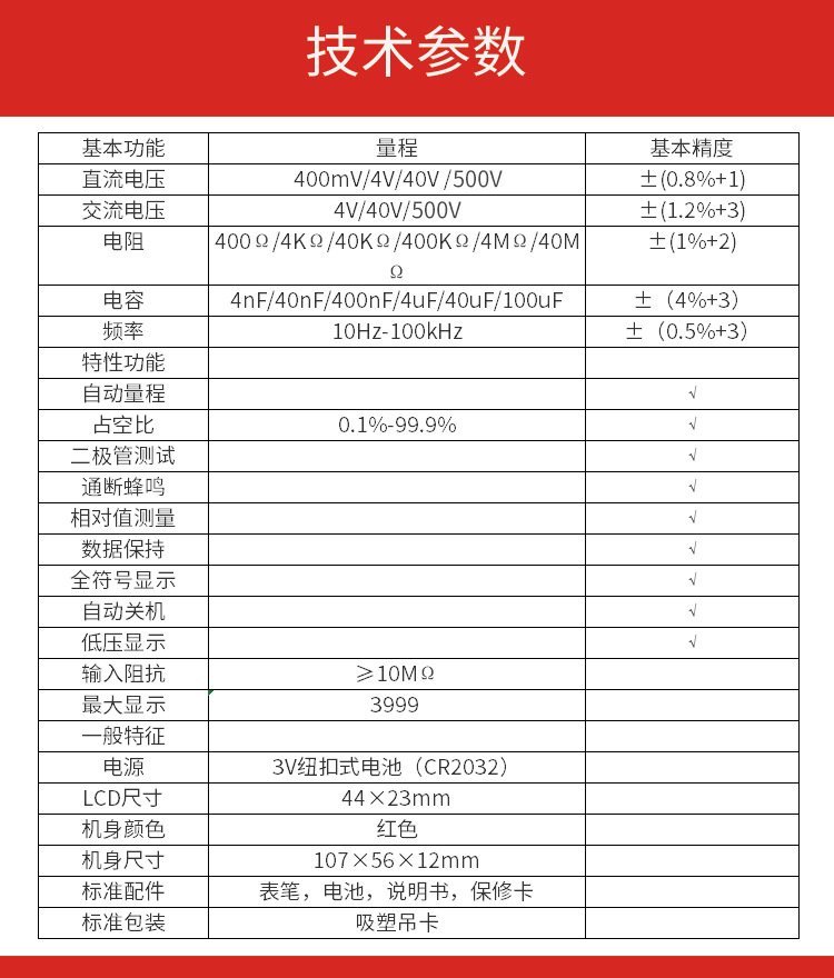 迷你超薄萬用表UA18