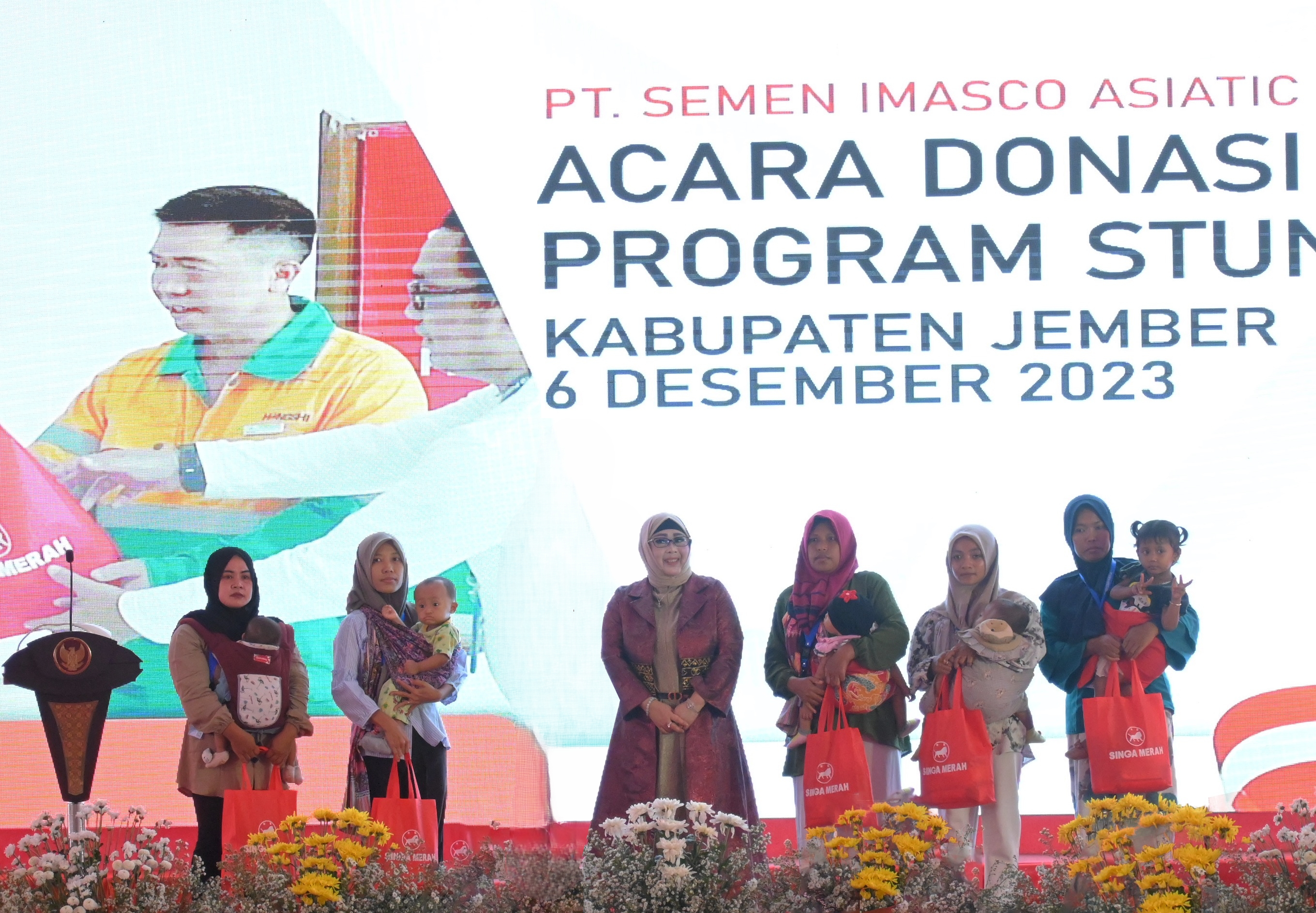 活動特邀印尼副總統K.H. Ma'ruf Amin先生親臨現場,東爪哇省省長Khofifah女士、東爪哇省警察廳廳長Irjen Pol Imam先生、東爪哇第五部隊首長Mayjen TNI Farid Makruf先生、印尼Dewa Dewi Dedi基金會主席Siti Mamduhah女士、任抹縣縣長Hendy Siswanto先生等政府主要領導陪同出席,紅獅集團印尼區域董事長胡曙光、任抹紅獅副總經理陸繼航、印尼區域班子成員及任抹紅獅員工代表等熱情接待,共同見證這一跨國愛心行動。