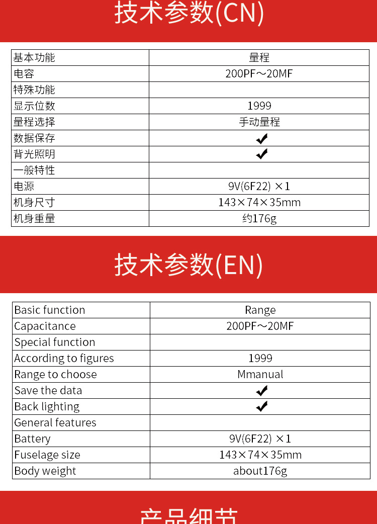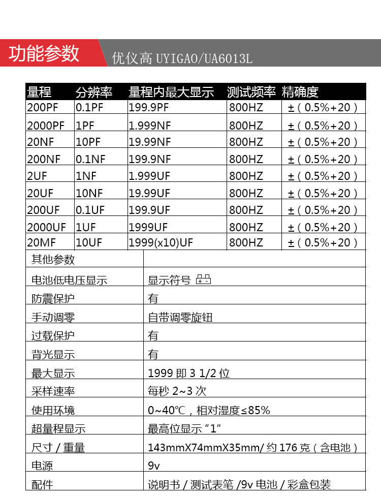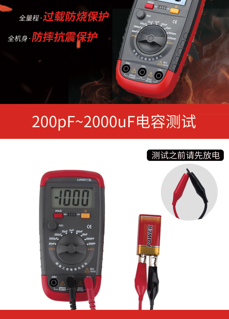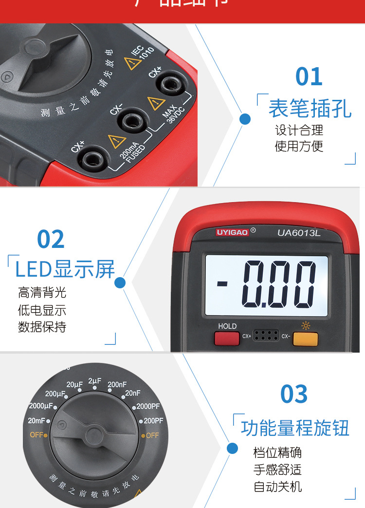優儀高迷你電容表帶背光UA6013L 便攜式測量儀200pF~20M